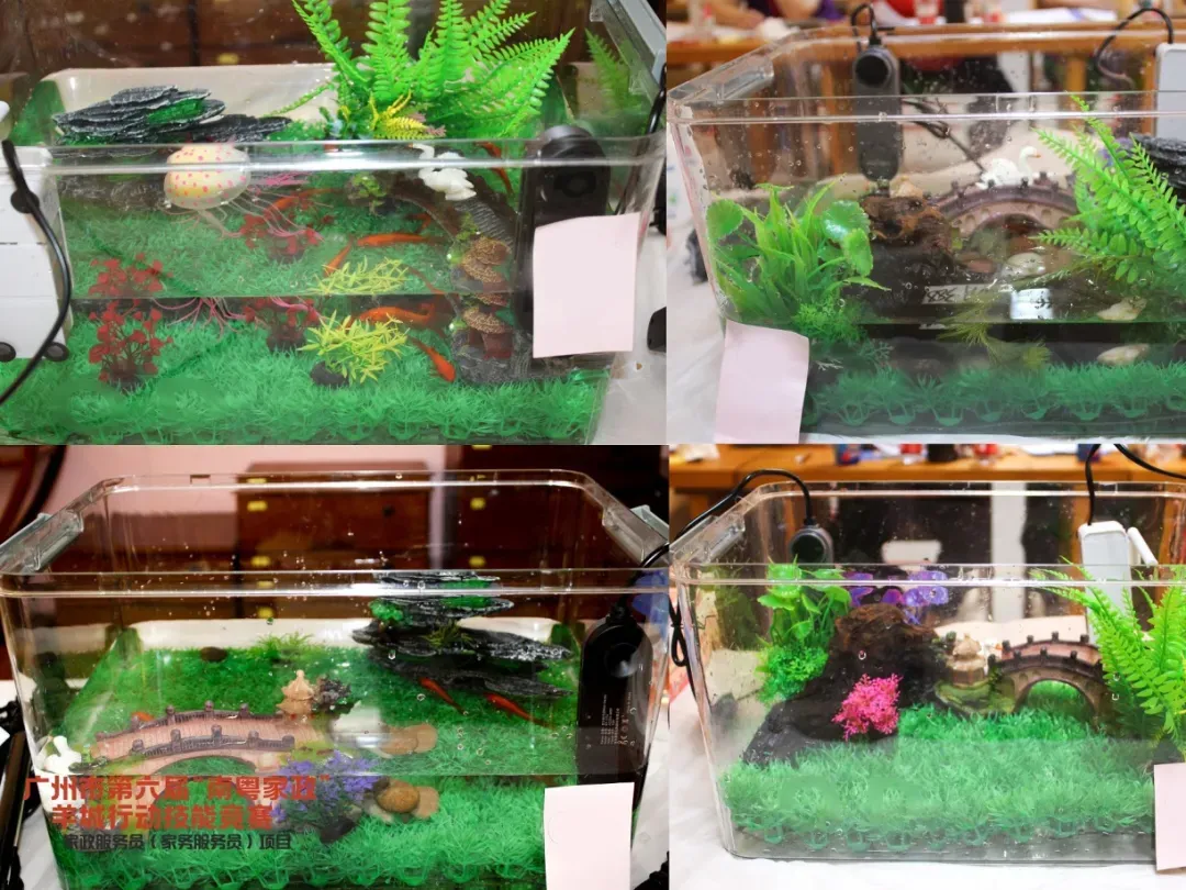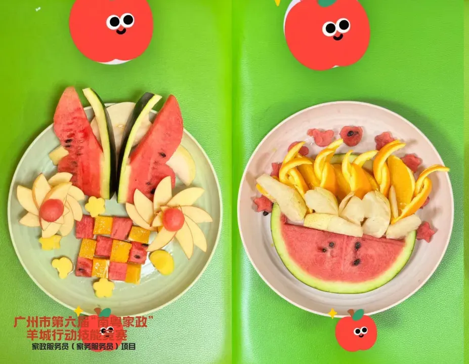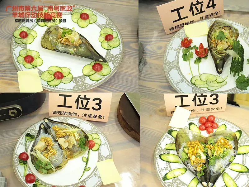 竞赛设立新秀组、师资组、工匠组三大组别,以“场景化考核”为核心,将理论知识与实践操作深度融合,重点考察选手在真实家政服务场景中的综合能力。新秀组面向院校学生,考核海鲜蘸料制作、领带熨烫指导、绿植造型养护等基础技能,并需制定老年人金婚活动方案,体现人文关怀。师资组针对教学从业者,要求完成清蒸海鲜烹饪、旗袍熨烫收纳、老人房美化等任务,并设计厨房立面规划图,突出教学与实践结合能力。工匠组一线服务人员同台竞技,通过水果雕花、皮鞋保养、金鱼缸装饰等高难度项目,比拼精细化服务水平,并设计端午节宴会方案,融合传统文化与现代需求。